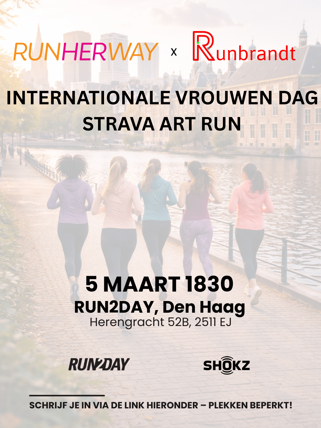 ✔ Deel ons initiatief op social media door @run_her_way te taggen en #RunHerWayDenHaag te gebruiken